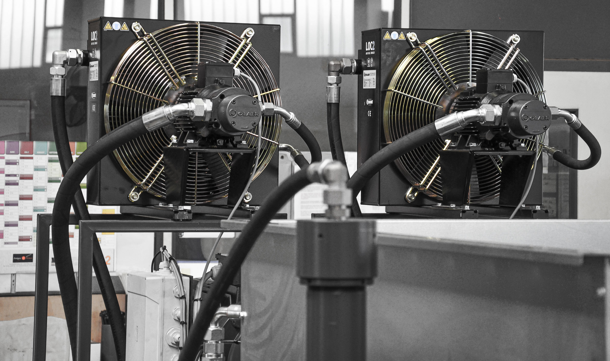 Die Maschine ist für thermisch stabile Betriebsbedingungen auch bei hoher Auslastung ausgelegt. Eine optionale Luft- oder Wasserkühlung gleicht Temperaturunterschiede im Hydrauliköl aus und hält die Öltemperatur auch im Dreischichtbetrieb innerhalb des zulässigen Bereichs. Ergänzend schützt ein Sicherheitsschalter das Hydrauliksystem vor Überhitzung. Das erhöht die Betriebssicherheit und unterstützt einen kontinuierlichen Einsatz über lange Laufzeiten.