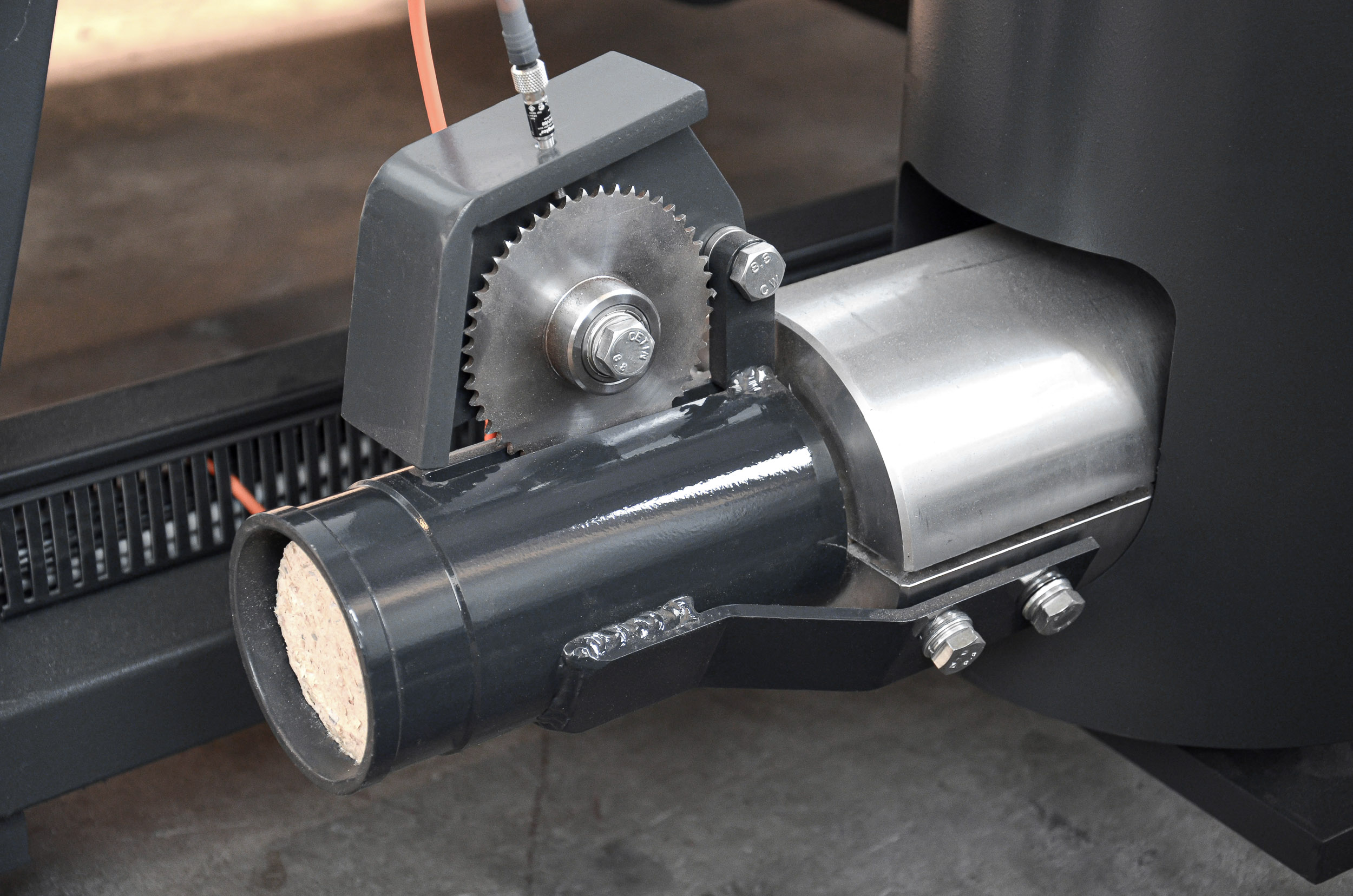 Die Brikettgeometrie bleibt auch bei wechselnden Materialeigenschaften reproduzierbar. Die Brikettlänge ist individuell einstellbar und wird standardmäßig über einen Näherungsschalter überwacht. Dadurch wird die gewünschte Länge dauerhaft eingehalten und die Qualität der Briketts zuverlässig abgesichert. Das erleichtert nachgelagerte Prozesse und sorgt für ein gleichmäßiges Erscheinungsbild des Austragsmaterials.