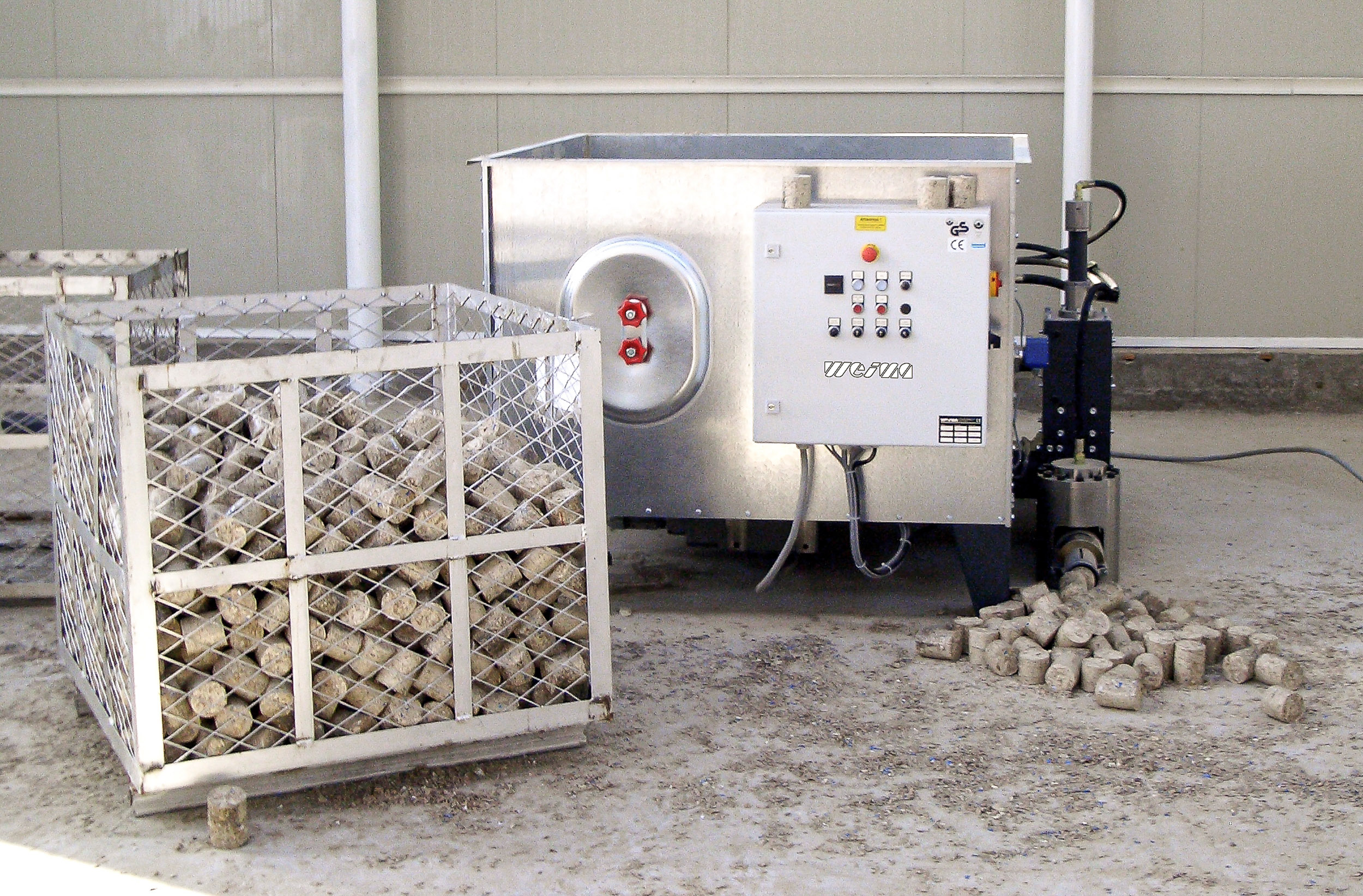 Die Maschinensteuerung ist auf einen übersichtlichen und prozesssicheren Betrieb ausgelegt. WEIMA fertigt die Schaltschränke am Standort Ilsfeld und kombiniert die kompakte Bauweise mit international etablierten Komponenten, darunter eine SPS-Steuerung von Siemens. Die Steuerung ist auf die Anforderungen des Brikettierprozesses abgestimmt und unterstützt eine zuverlässige Maschinenführung. Das vereinfacht die Bedienung und schafft eine belastbare Basis für den industriellen Alltag.