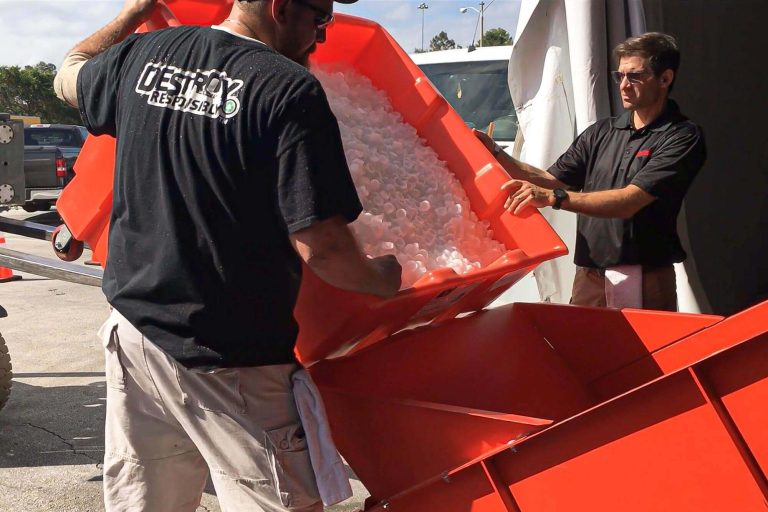 Unser Destroy Responsibly™ Programm macht Events wie Messen und öffentliche Veranstaltungen nachhaltig. Wir kooperieren dabei mit den Organisatoren und stellen eine voll funktionsfähige Produktionslinie aus Zerkleinerern und Förderbändern samt Mitarbeitern zur Verfügung. So werden beispielsweise Holzabfälle einer Fachmesse dort recycelt, wo sie entstanden sind: direkt auf dem Gelände. Eine echt saubere Lösung.