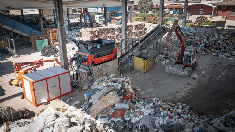 Bei einem Kunden in Brescia, Italien, zerkleinert ein M8.28 Zweiwellen-Shredder mit Hydraulikantrieb verschiedene Abfälle. Dazu gehören Sperrmüll, Hausmüll sowie kommunale und industrielle Abfälle.