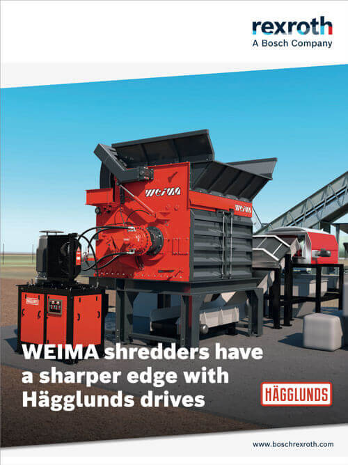 The HÄGGLUNDS brand hydraulic drive used by WEIMA is manufactured by the company Bosch Rexroth. As a recycling specialist, WEIMA has been working with these hydraulic experts for many years.