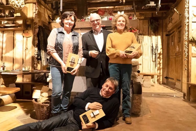 The presentation of the anniversary gifts provided a magical moment – it had to be massive and robust. And it was. A silver bar framed in wood with an engraved dedication in a black stainless-steel plate completes the present.