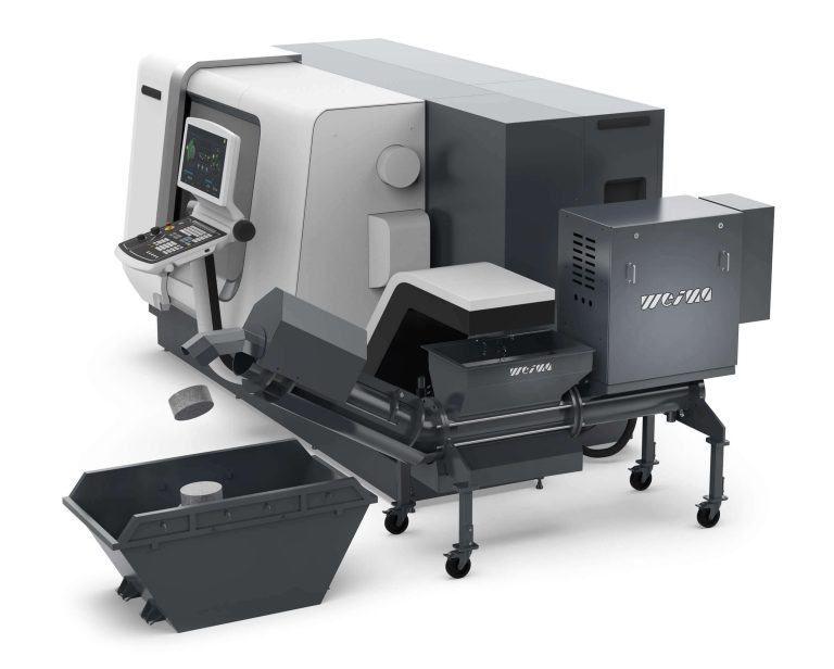 WEIMA dewatering presses can be easily integrated into CNC processing machines. Simply roll the press under the chip conveyor, connect it and start compacting, emptying and dewatering your machining waste straight away. This plug-and-play solution saves time and optimizes the entire production process.