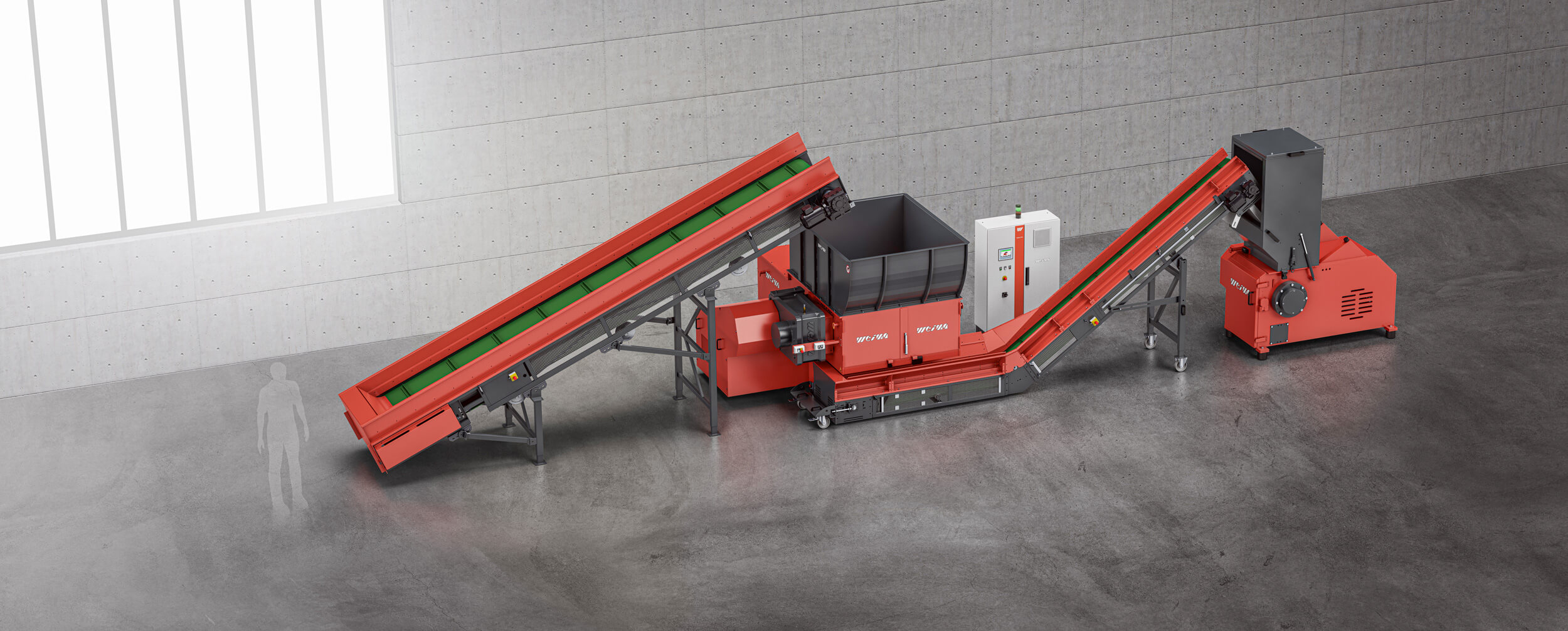 These machines are usually used as secondary shredders in multi-stage recycling plants. Pre-shredded material is granulated to the desired final size. Granulators score points with their high rotor speeds, maintenance-friendly design and high throughput. Common areas of application are slides, container, thin-walled pipes, profiles, bumpers, injection molding waste and thermoformed parts.