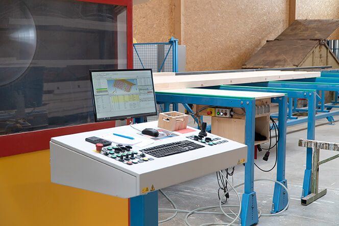 The big challenge for the WL 8 was to implement a harmonious concept for the 3-fold feeding of the hopper according to customer requirements. The material is fed in by means of a 20-metre-long infeed conveyor belt which continuously removes the remnants from the joinery line and additionally by manually loading beam remnants, non-returnable pallets, boards or OSB boards by means of a fork lift or tipping trough. In addition, residual materials are simultaneously fed from the precast halls into the large hopper opening by means of a suction system and rotary valve.